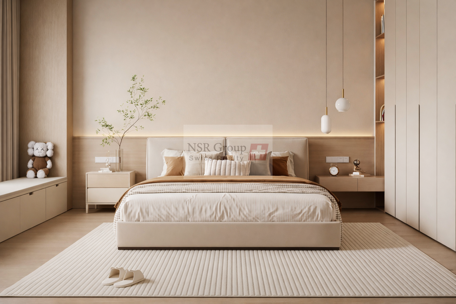 Composé de 5 pièces, il propose 3 chambres, chacune avec son dressing et sa salle-de-bains en suite.
